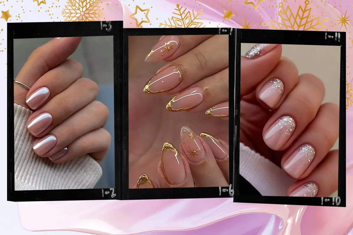 Праздничный маникюр в сдержанном исполнении. Блесточки используют дозированно: в виде мягкого градиента на кончиках, акцентных ногтей или полупрозрачного слоя поверх базового цвета. Самые популярные оттенки: золотой, розово-золотой, медный и серебряный. Такой дизайн выглядит аккуратно и уместно как во время праздников, так и после них.
