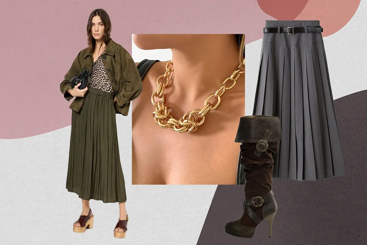 Большие металлические цепи уже не выглядят современно. Они создают чувство избыточности и отвлекают внимание от самого образа. Украшения должны быть функциональными элементами стиля, а не главным акцентом.