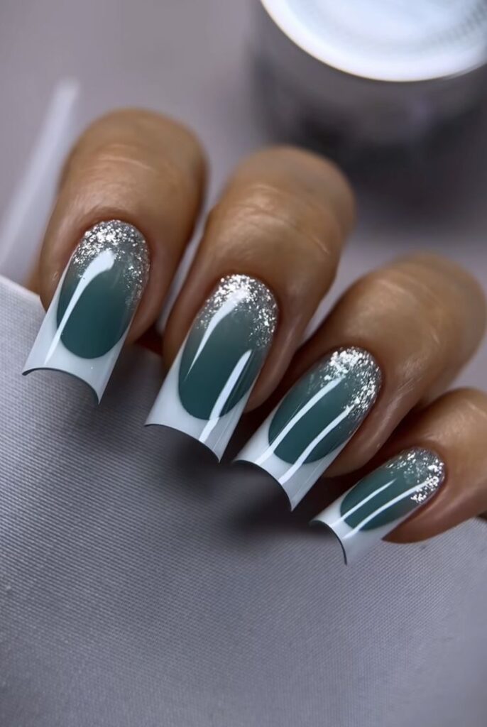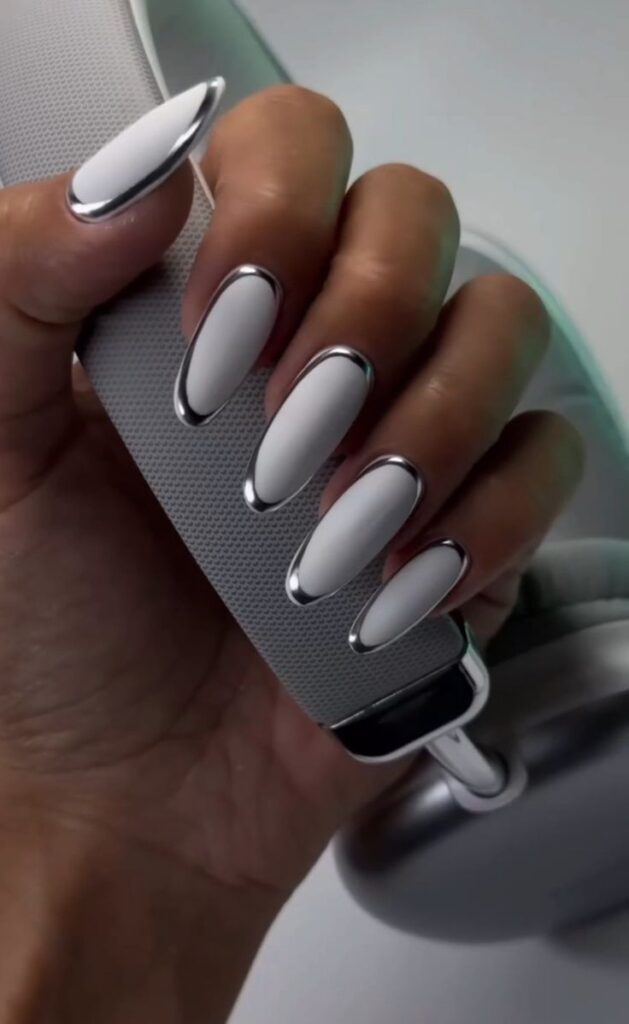 2. Серебряным хромированным лаком рисуем френч, даем высохнуть.