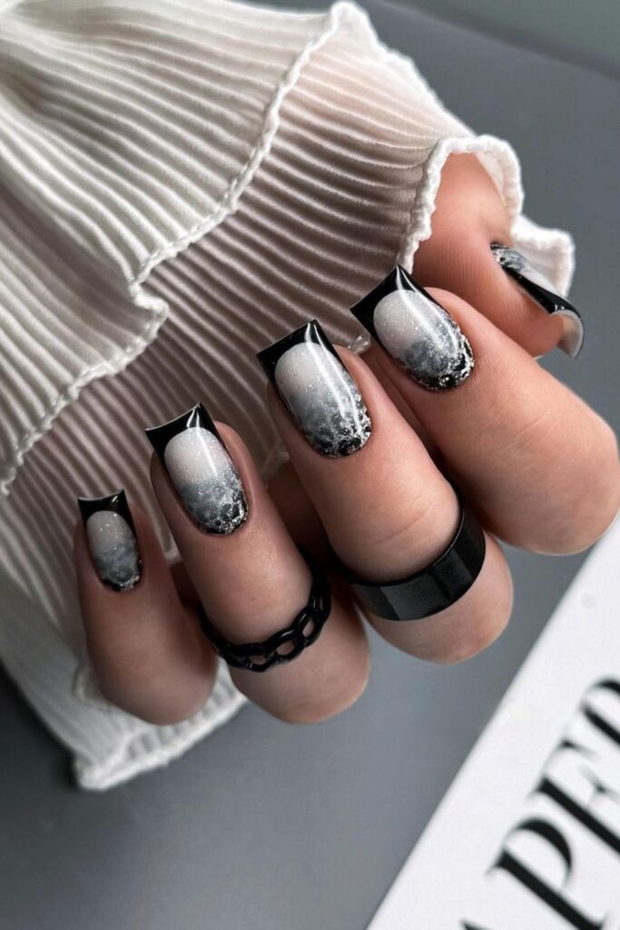 5. Черным гель-лаком добавляем вкрапления в капельной технике. Сушим.