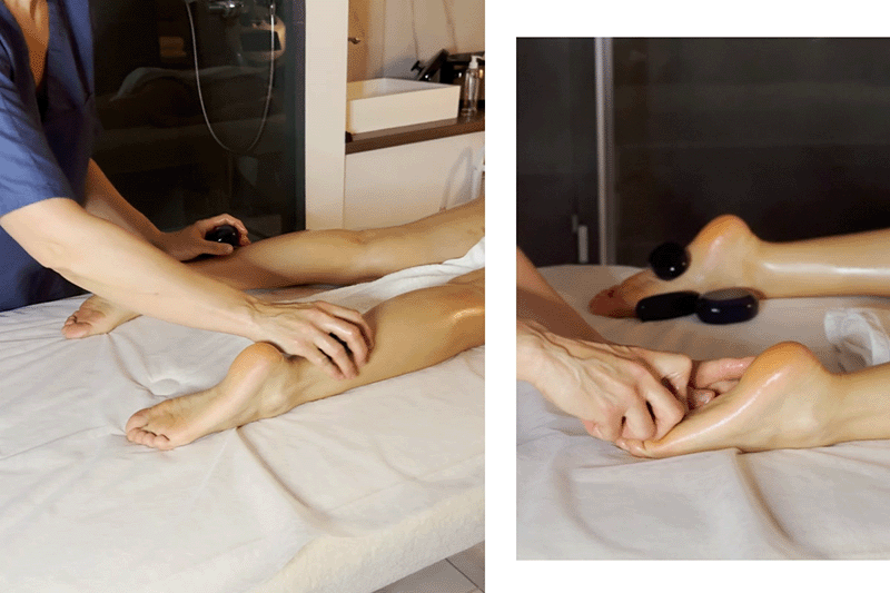 Тепло вначале. Сеанс начинается с выкладывания теплых камней на спину, которые остаются там во время всего массажа ног. Особое внимание специалист уделяет стопам, где расположено множество нервных окончаний и энергетических центров.