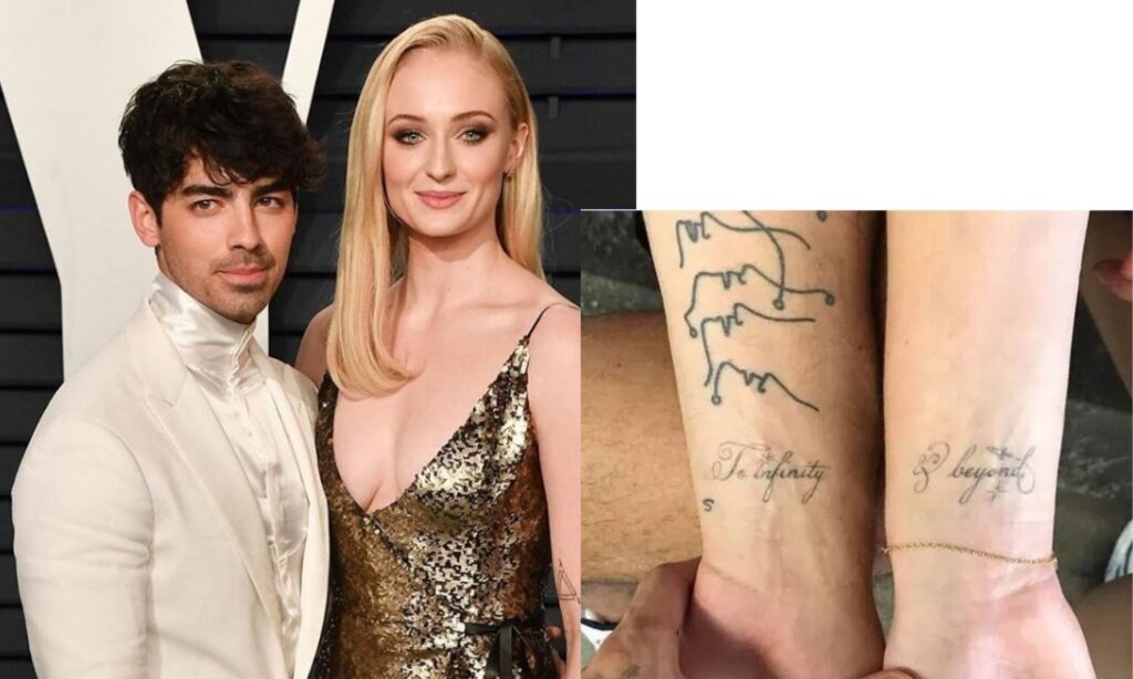 Бывшие супруги объединяло парное тату, посвященное любимой собаке Уолдо. Фраза To infinity and beyond разделена между их запястьями: у Джо – To infinity («До бесконечности»), у Софи – and beyond («и дальше»). Эта татуировка появилась в 2018 году.
