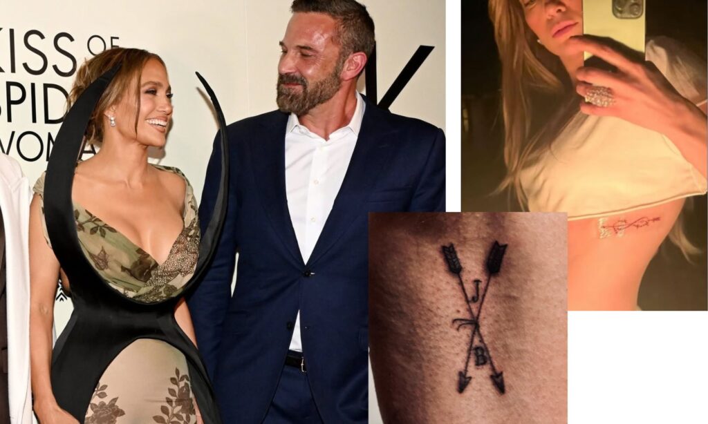 В День святого Валентина в 2023 году пара решилась на парные татуировки. Они разные по дизайну, но объединены общим смыслом – страстной любовью. У Джей Ло – стрела Купидона, проходящая сквозь символ бесконечности, и две скрещенные стрелы с буквами J и B. Бен набил две стрелы, соединенные в центре, между которыми размещены инициалы их имен.