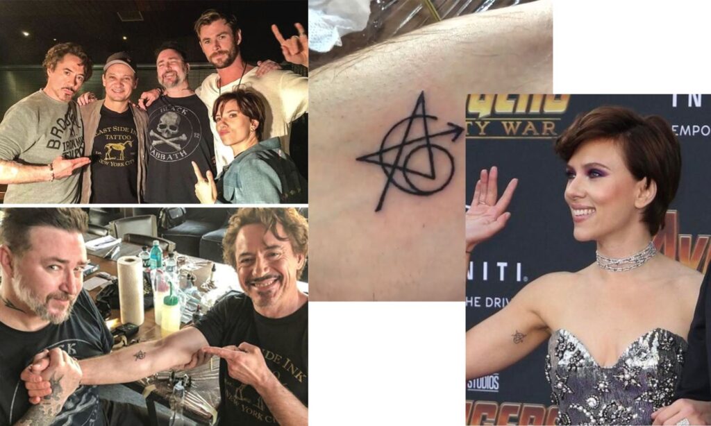 Пятеро из шести оригинальных «Мстителей» – Роберт Дауни-младший, Крис Эванс, Крис Хемсворт, Джереми Реннер и Скарлетт Йоханссон – после съемок сделали одинаковые татуировки с логотипом команды на правом предплечье. Инициатором стала Скарлетт. Единственным, кто отказался, был Марк Руффало.