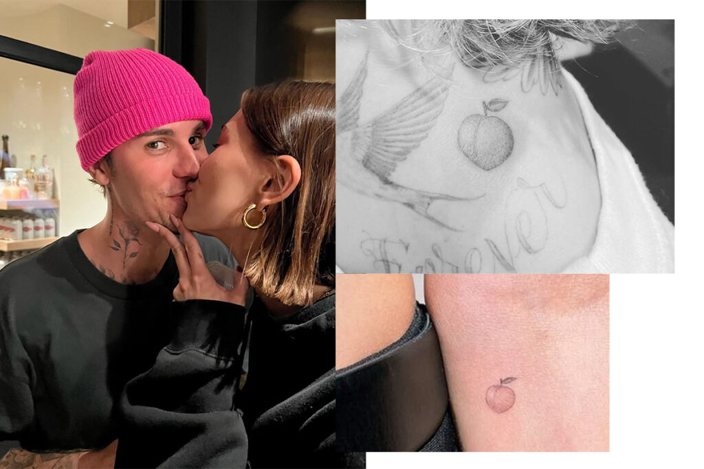 Супруги давно признаются в своей любви к татуировкам. Среди их парных татуировок – мелкие буквы, религиозные символы и нежные надписи. Одним из самых обсуждаемых стало слово grace («благодать»), отражающее их общие духовные ценности. В октябре 2020 года Хейли набила на безымянном пальце букву J с маленькой звездочкой. Также в 2021 году оба сделали татуировку в виде персика – символ, отсылающий к хиту Джастина Peaches и ставший романтическим жестом пары. У Хейли персик расположен на внутренней стороне руки, у Джастина – на шее.