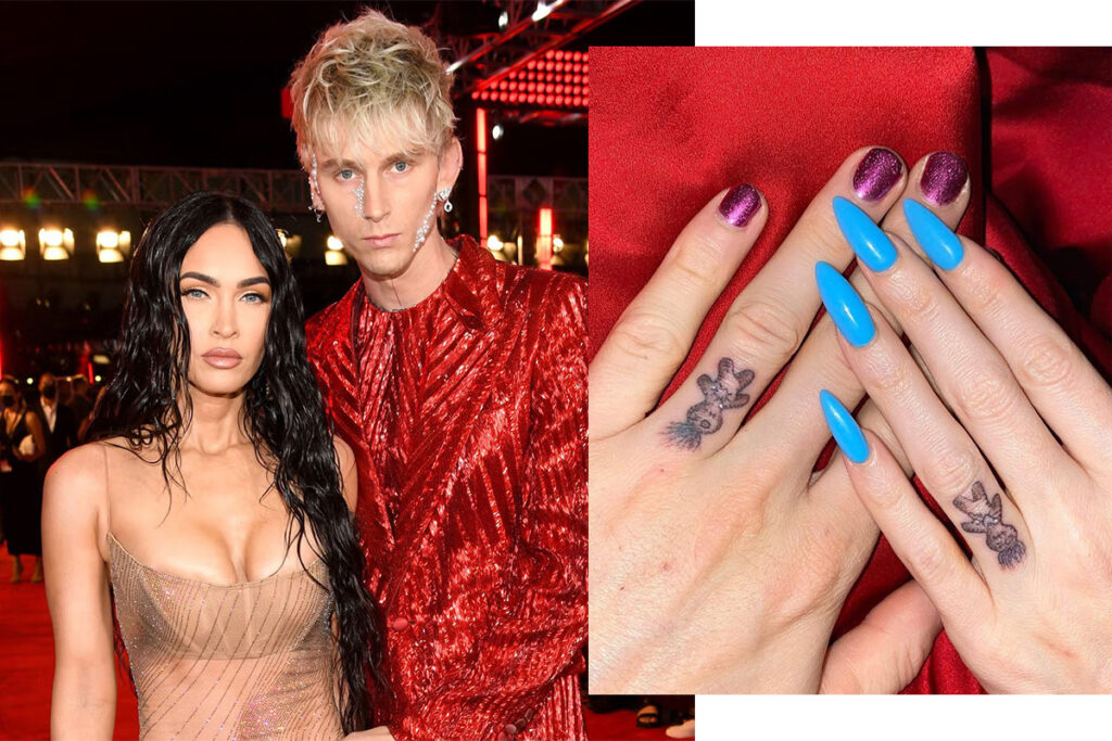 Влюбленные создали символические «тату-обручальные кольца» – маленькие куклы-вуду с сердцем на безымянных пальцах, олицетворяющие их связь и желание быть вместе. Ранее они также набили идентичную надпись the darkest fairytale – фразу из одного из первых сообщений в начале романа. У Меган эта надпись расположена на внутренней стороне предплечья, а у Колсона – на боку бедра. Кроме общих тату, у каждого есть и персональные символы: у Меган есть надпись el pistolero – прозвище MGK, а у Бейкера – инициалы актрисы.