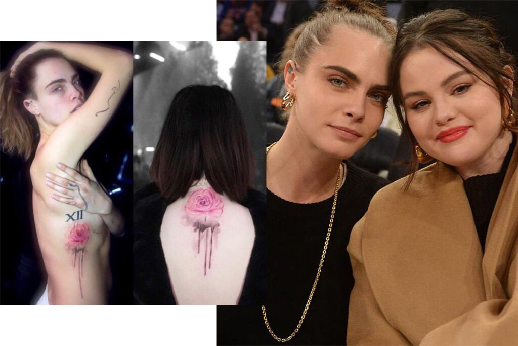 Близкие подруги имеют схожие татуировки в виде акварельных роз с «текущими» элементами. Работы сделал известный мастер Bang Bang. У Селены тату расположен на спине с переходом на шею, у Кары – на подреберье. Сделанные в начале 2022 года, эти татуировки символизируют многолетнюю дружбу и имеют несколько личных значений.