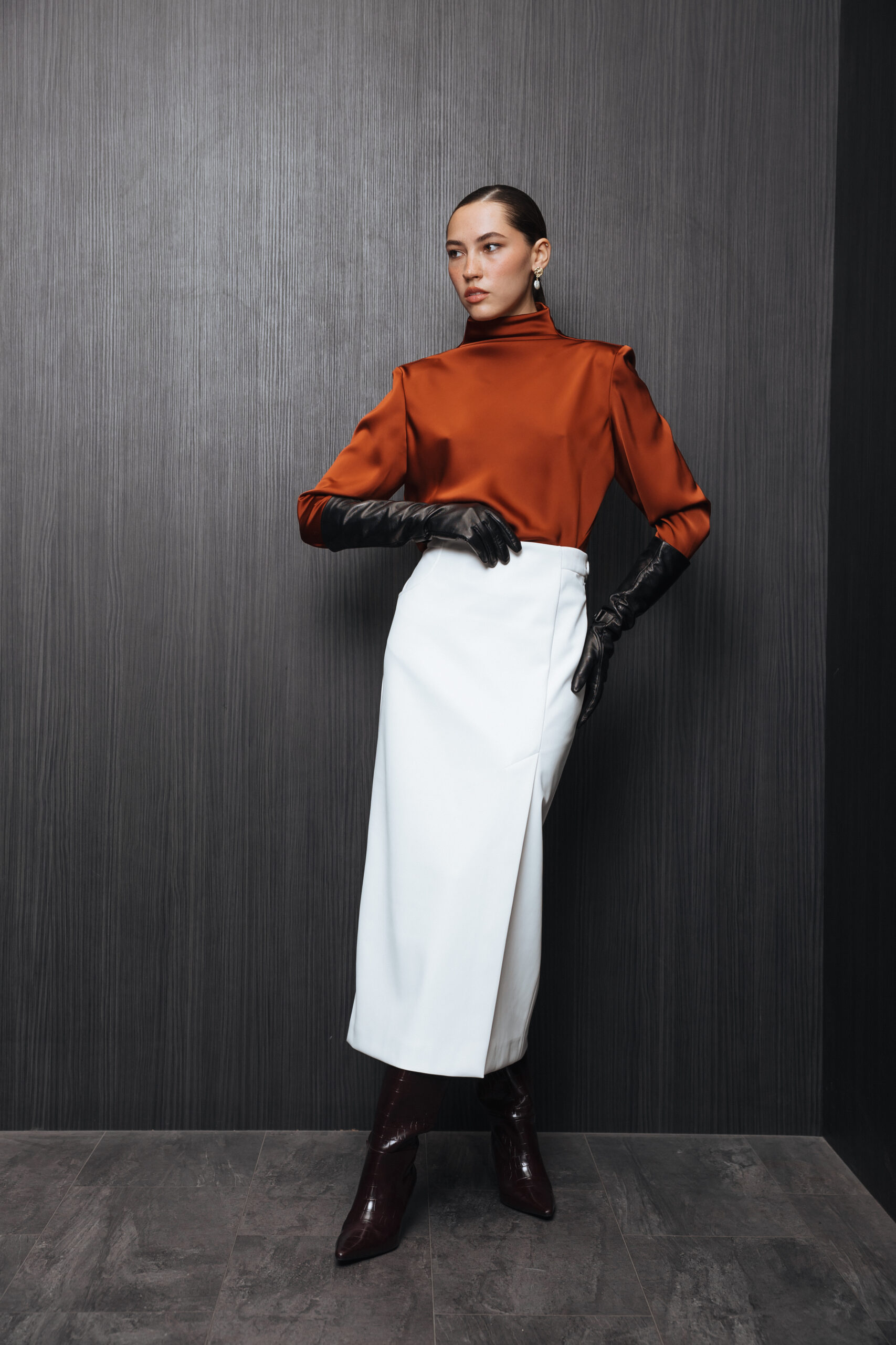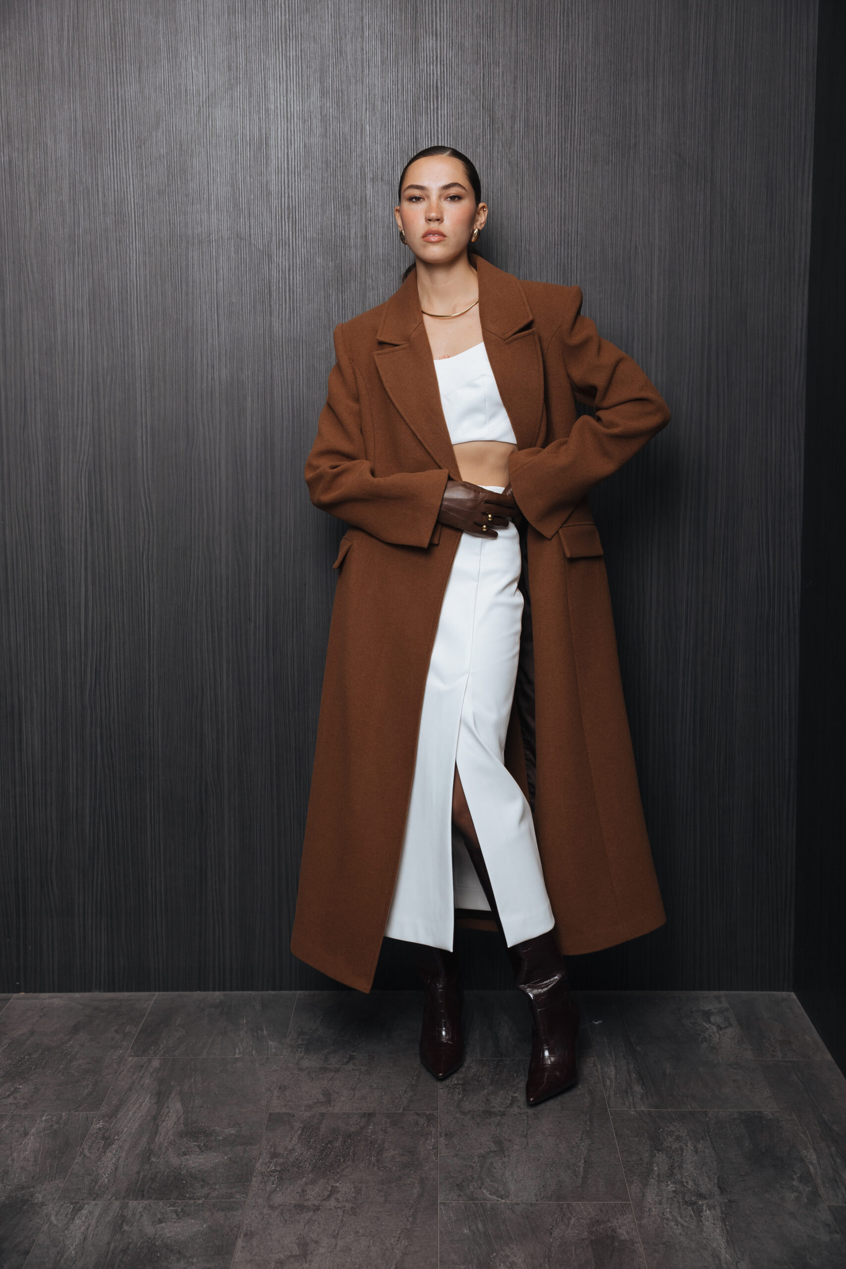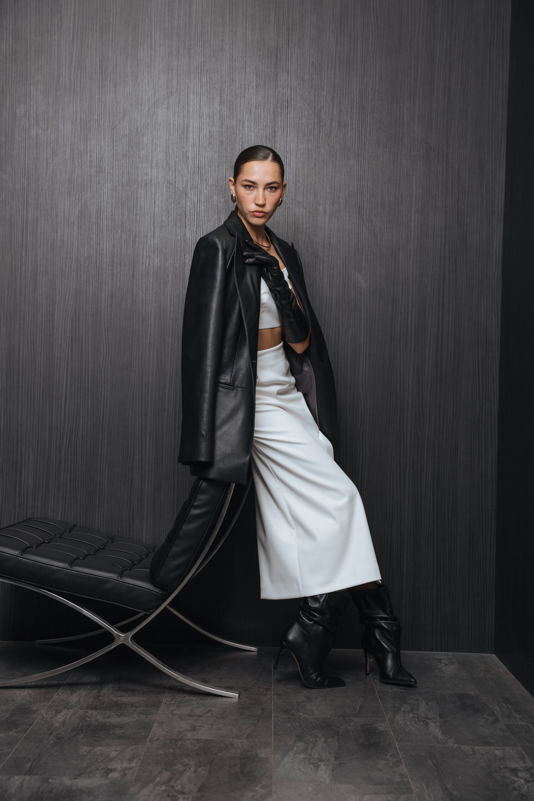 Новий дроп Almatova Brand представлений в кольорах шоколаду, гнилої вишні, сірому, чорному та білому – впевнених, сильних, ідеальних для осіннього сезону. Кашемір і шерсть огортають м’якістю, екошкіра у виробах додає рішучості. Разом вони створюють баланс тепла й характеру, ніжності й незалежності.