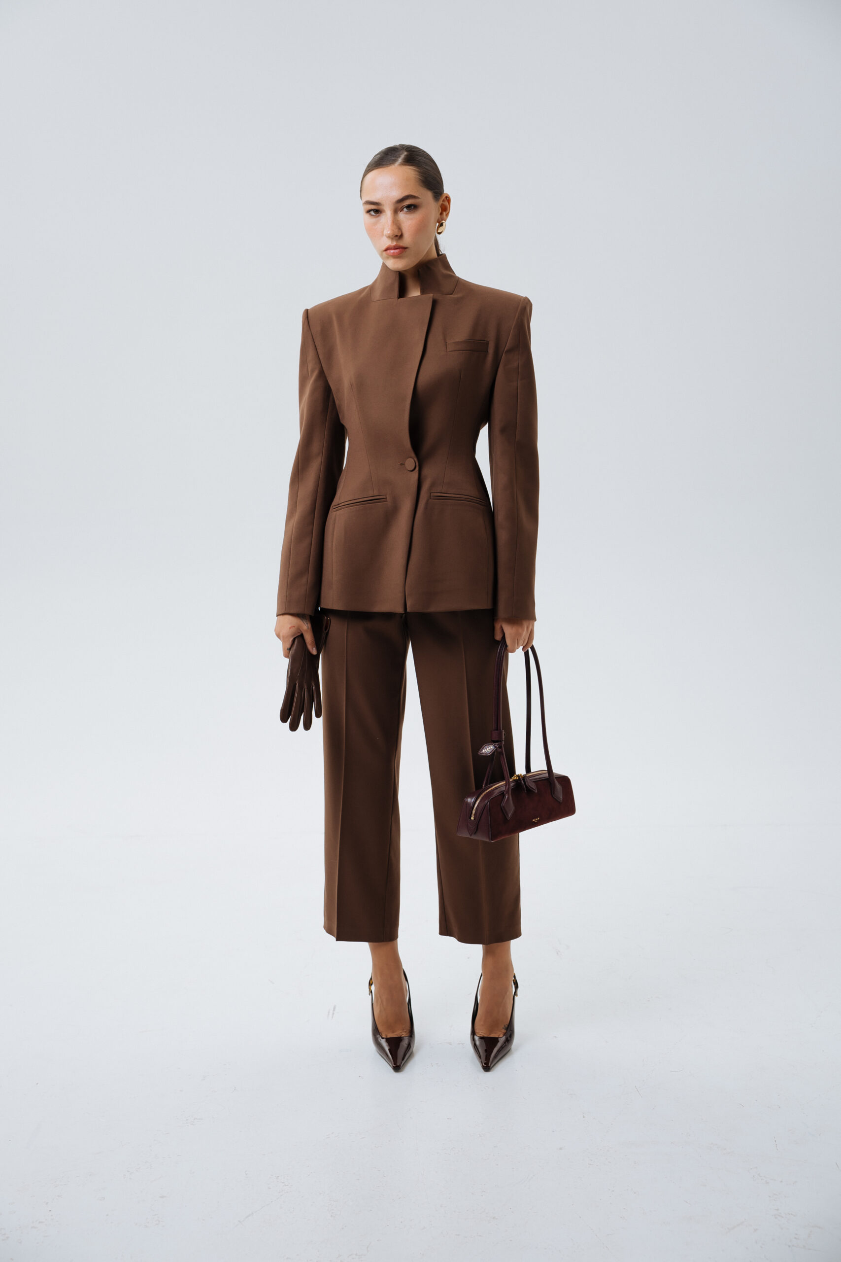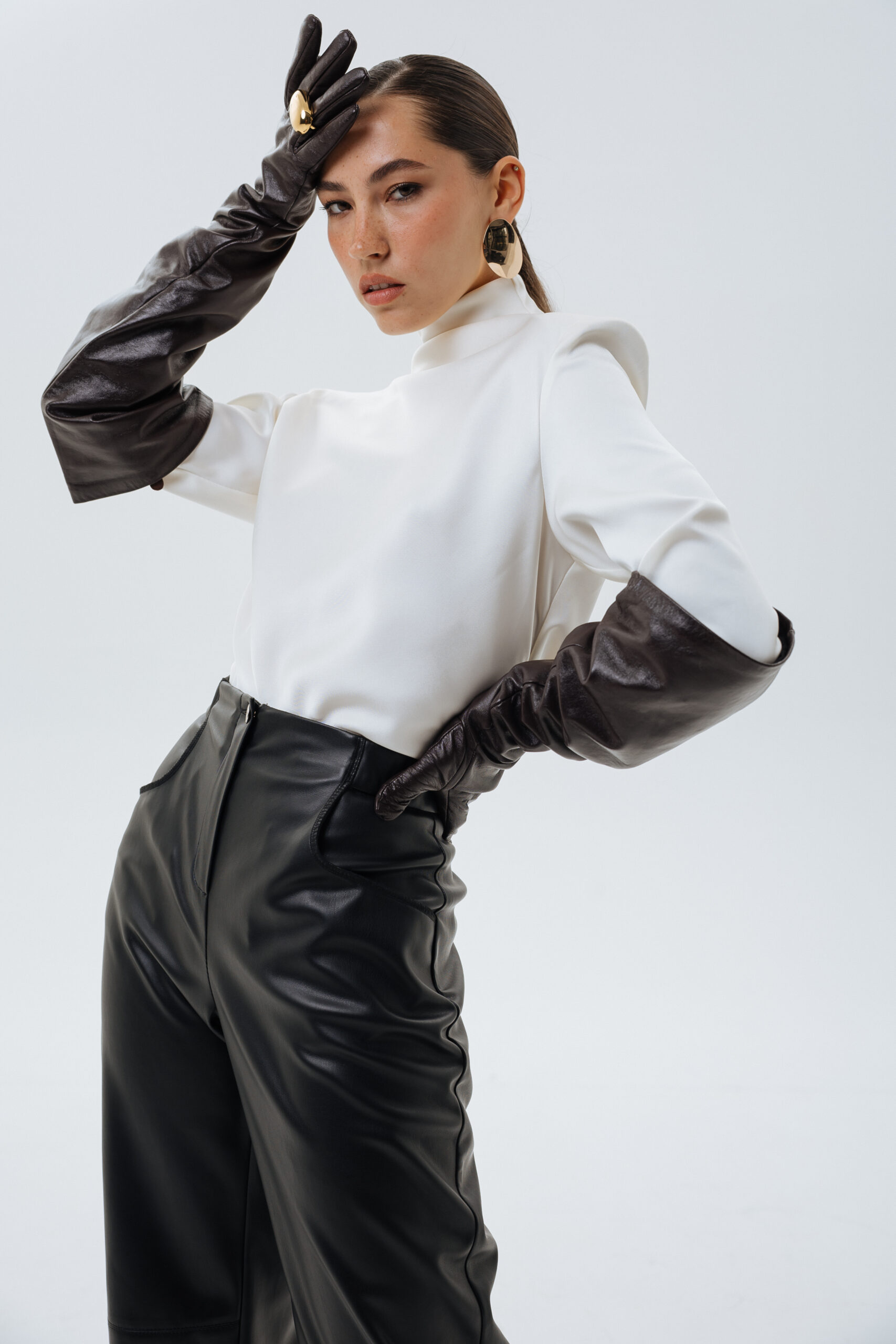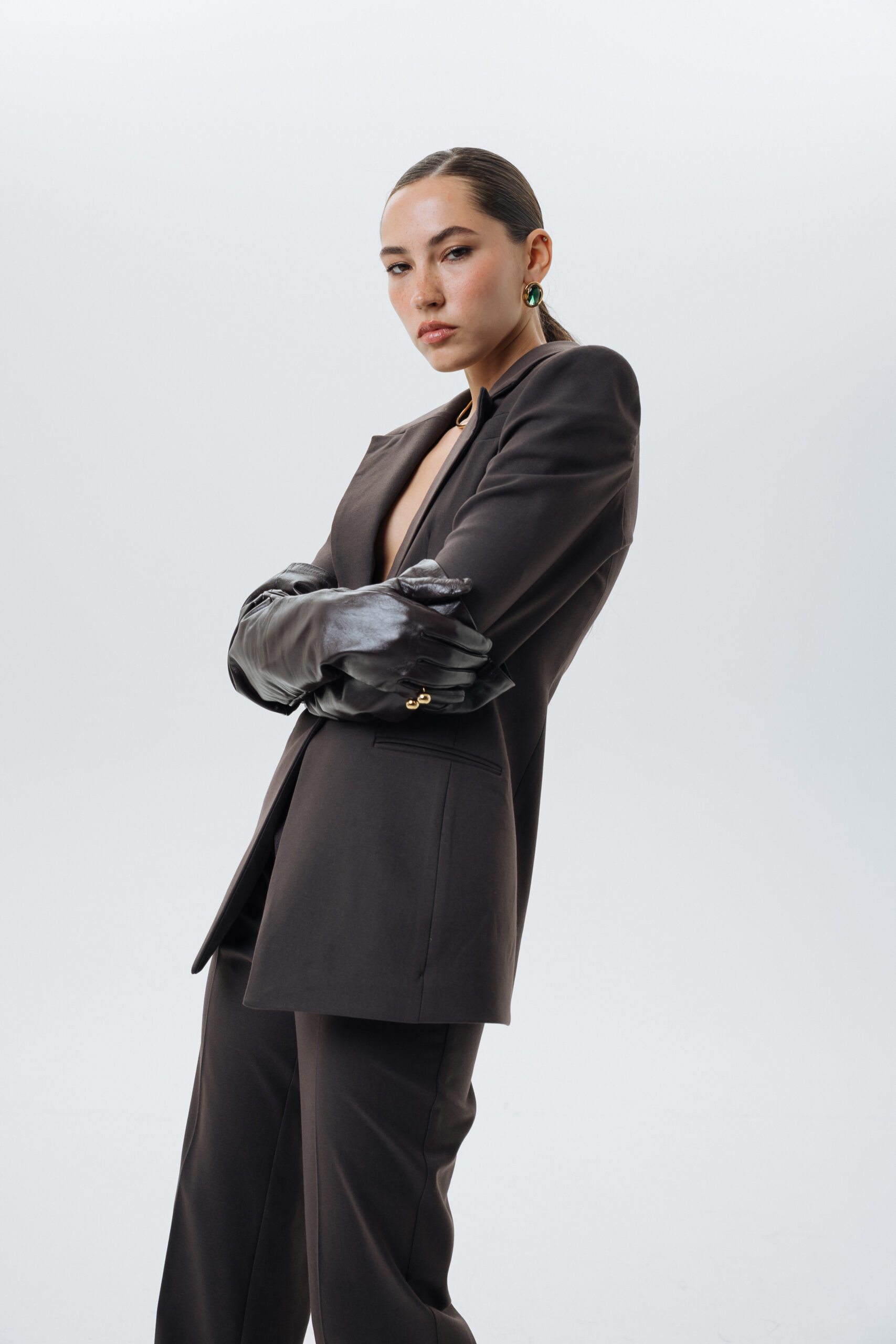 Новий дроп Almatova Brand представлений в кольорах шоколаду, гнилої вишні, сірому, чорному та білому – впевнених, сильних, ідеальних для осіннього сезону. Кашемір і шерсть огортають м’якістю, екошкіра у виробах додає рішучості. Разом вони створюють баланс тепла й характеру, ніжності й незалежності.
