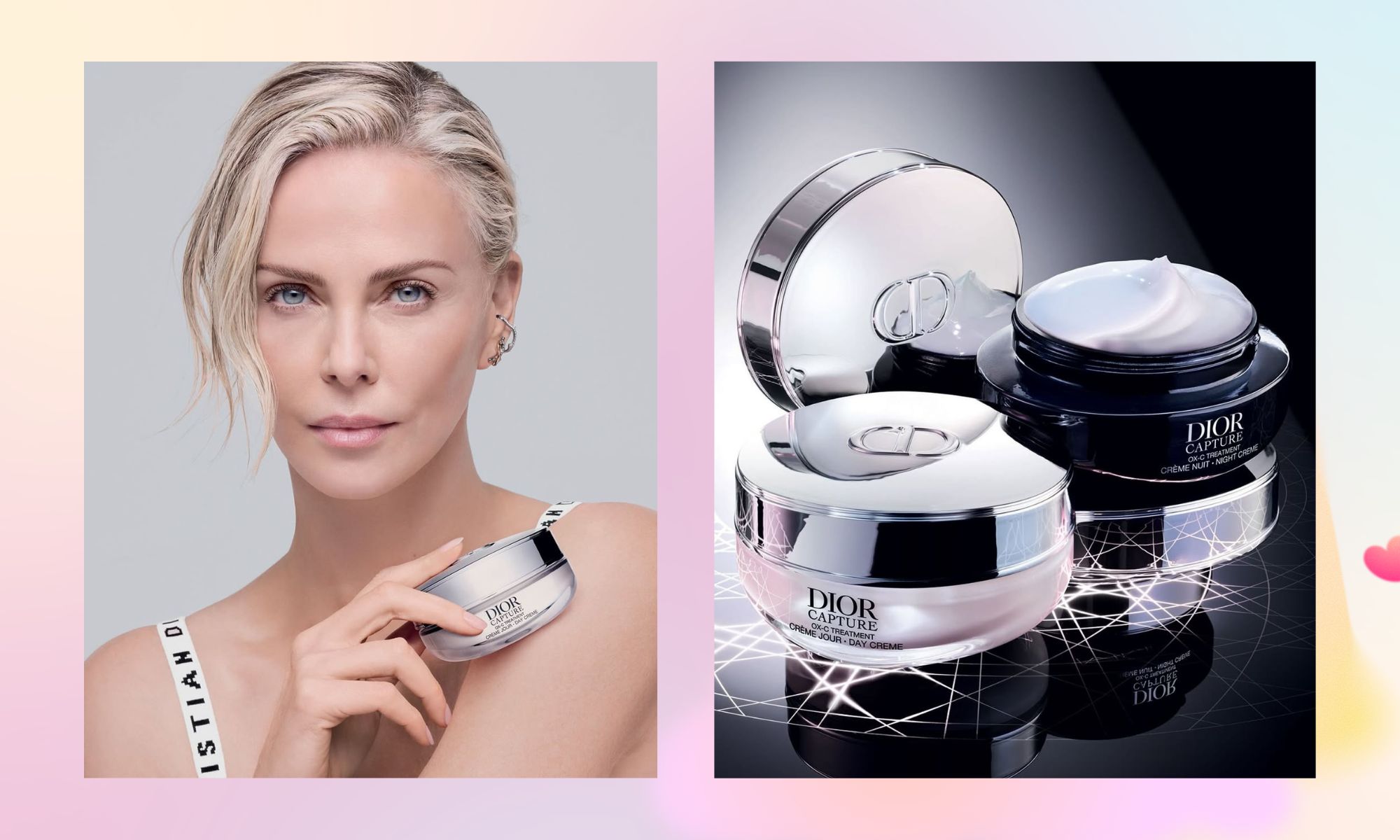 Рада з питань зворотного старіння Dior виявила феномен нічного старіння: щоночі колаген атакують руйнівні ферменти — MMP (матриксні металопротеїнази), які на 66% активніші вночі, ніж вдень. Більше того, шкіра втрачає 28% колагену протягом ночі. Щоби допомогти зменшити ознаки нічного старіння в той час, коли шкіра найбільш вразлива, Dior Capture створив нічний крем,який доповнює щоденну дію денного крему. Разом ці два засоби догляду за шкірою створюють 24-годинний протокол про-колагену для помітного омолодження шкіри, якій бракує колагену, завдяки технології OX-C Treatment™ та захисту від ознак нічного старіння завдяки Prolatonine. Цей експертний протокол коригує ознаки старіння день за днем і ніч за ніччю. Використовувані як дует, денний та нічний крем Dior Capture покращують зовнішній вигляд пружності шкіри на 70%.