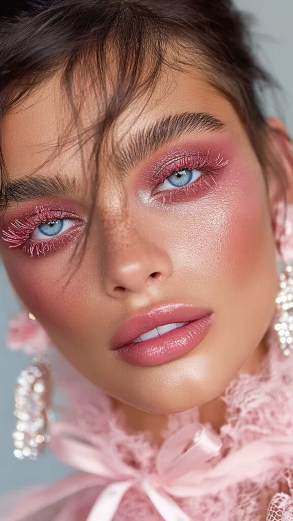 Рум’янець стає не акцентом, а інструментом скульптурування. На подіумах дрейпінг часто поєднують із яскравими тінями або монохромним макіяжем «тотальний колір зверху вниз» — так, щоби відтінок рум’ян плавно перетікав у колір очей чи губ.
