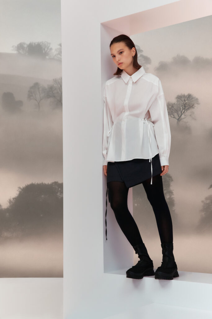 Капсула одягу, взуття та аксесуарів створена з переможницею проєкту The Culture of Design від Intertop та Ukrainian Fashion Week Лілією Олійник та її брендом. Дроп поєднує подіумну естетику з глибинними сенсами та функціональність і універсальність повсякденного одягу, що дозволяє легко формувати образи, поєднуючи речі між собою.