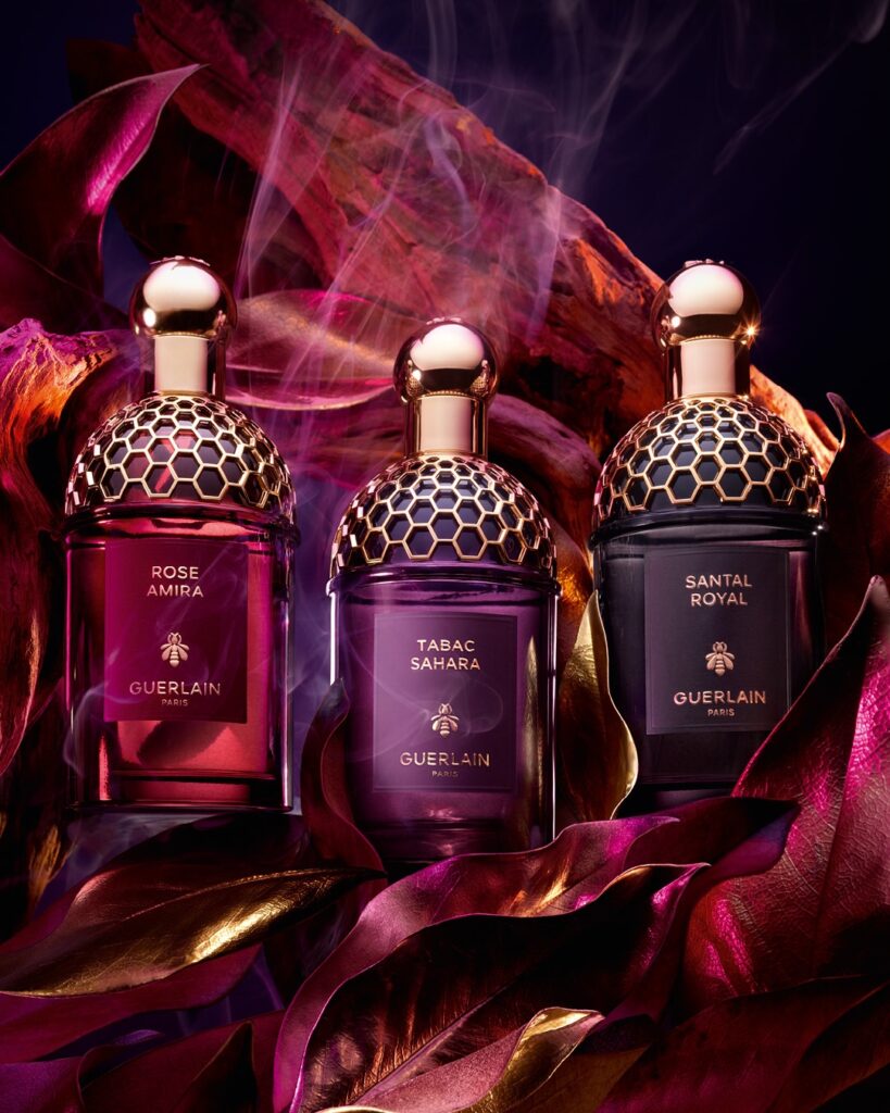 Коли настає ніч, пустеля змінює свій вигляд: небо осяяне зірками, а насичені спекою дюни випромінюють таємничий туман. У світлі місяця пісок набуває відтінків фіолетового та рожевого, які тануть із кольором неба, наповнюючи ландшафт загадковою – майже нереальною – атмосферою. Це казкове видовище надихнуло Дельфін Джелк, директорку зі створення парфумів та парфумерку Guerlain, на створення нового творіння в колекції Absolus Allegoria — Tabac Sahara.