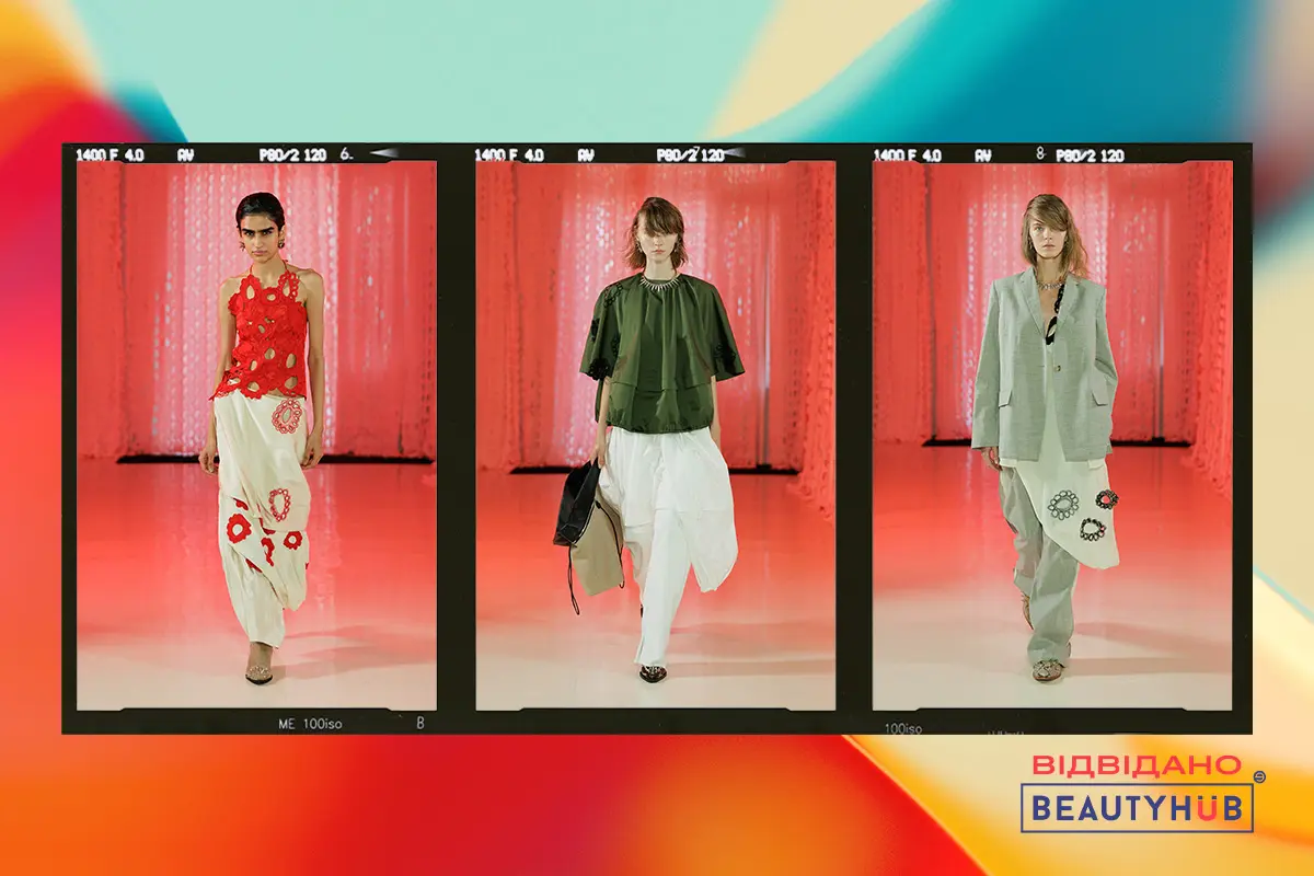 У ній поєднано шовк, мереживо та дизайнерську вишивку з більш грубими тканинами, такими як денім, що створює виразний контраст між ніжністю та силою. Одяг має трансформативний характер: жакети й сукні можуть змінювати форму, залишаючись багатофункціональними та адаптивними. Видимі шви та необроблені краї підкреслюють відмову від ідеалізованої досконалості та наголошують на автентичності. Доповнюють колекцію скульптурні аксесуари, серед яких особливу увагу привертають дерев’яні квіти, вирізані вручну й інтегровані у прикраси та елементи одягу.