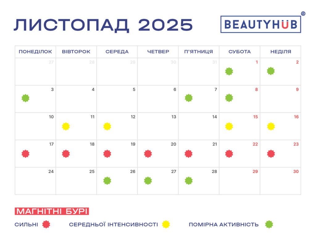 Календар магнітних бур на листопад 2025 року