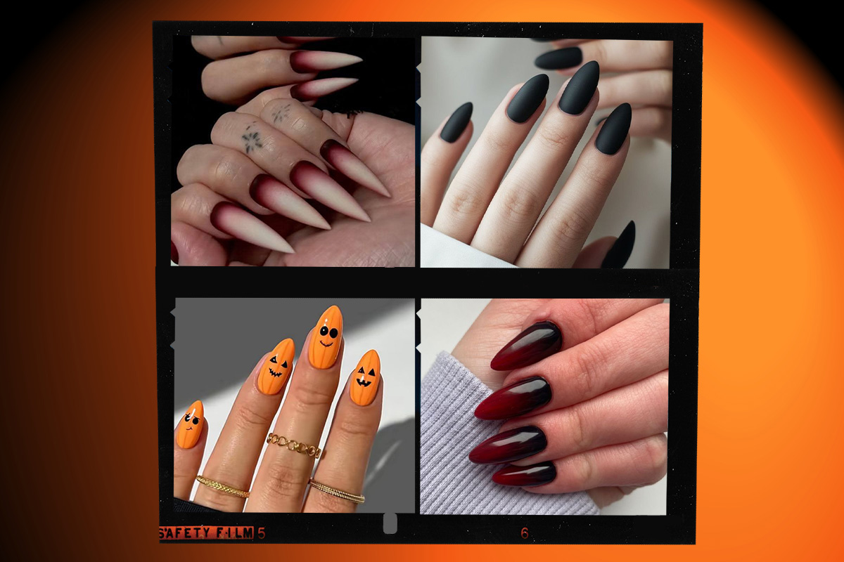 Ще один варіант дизайну з привидами. На нігтях використовують контрастні кольори та різні типи покриття, що додає об’єму навіть простим малюнкам.