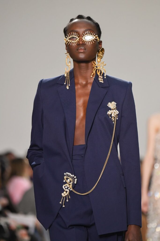 - Glamoratti. Костюми з витонченими плечима стануть на три розміри більшими, а воронкоподібні вирізи стануть основою кожного вбрання. Прикраси стануть масивнішими, сміливішими та золотистішими.