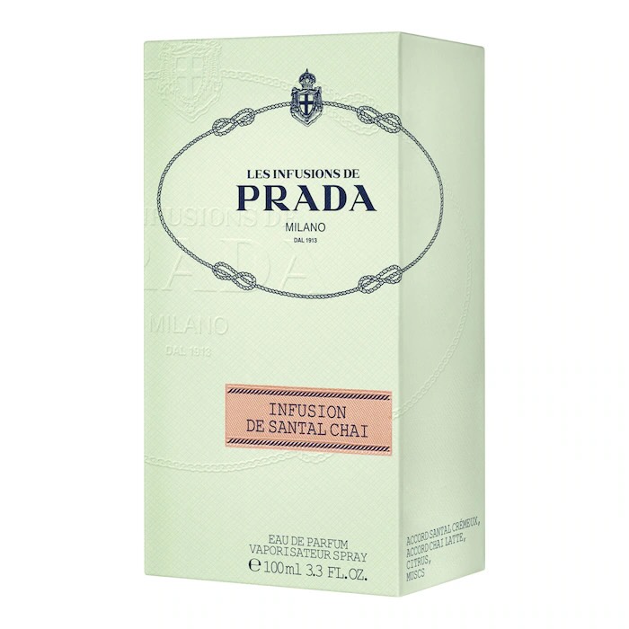 Реліз Prada Infusion de Santal Chai заплановано на 2026 рік. Аромат розкривається цитрусовими та кардамоном, які змішуються із чаєм масалу, молоком та спеціями, у базі аромату — сандал та мускус.
