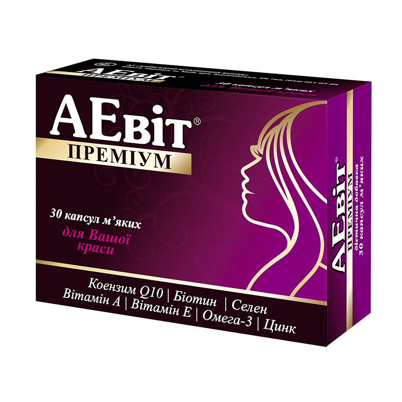 Комплекс «АЕвит Премиум» также содержит незаменимый для кожи Коэнзим Q10. Он действует как антиоксидант и защищает кожу от негативного воздействия УФ-излучения, предотвращает появление пигментации, а также приостанавливает процесс старения кожи и всего организма в целом.